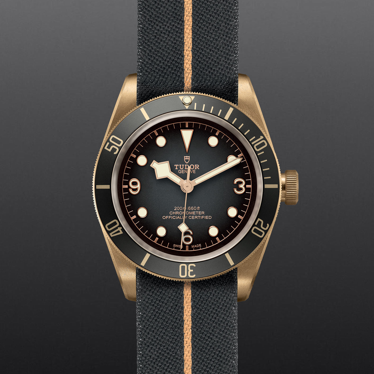 The characteristic element of the Black Bay Bronze is an imposing bronze case, 43 mm in diameter, which is an aesthetic reference to the use of bronze in historic ships and other diving equipment. The highperformance aluminium bronze alloy, guarantees the development of a unique patina to match its user’s habits. A combination of chocolatebrown dial and bezel – a first for Tudor – with golden and beige accents, completes the model’s look.