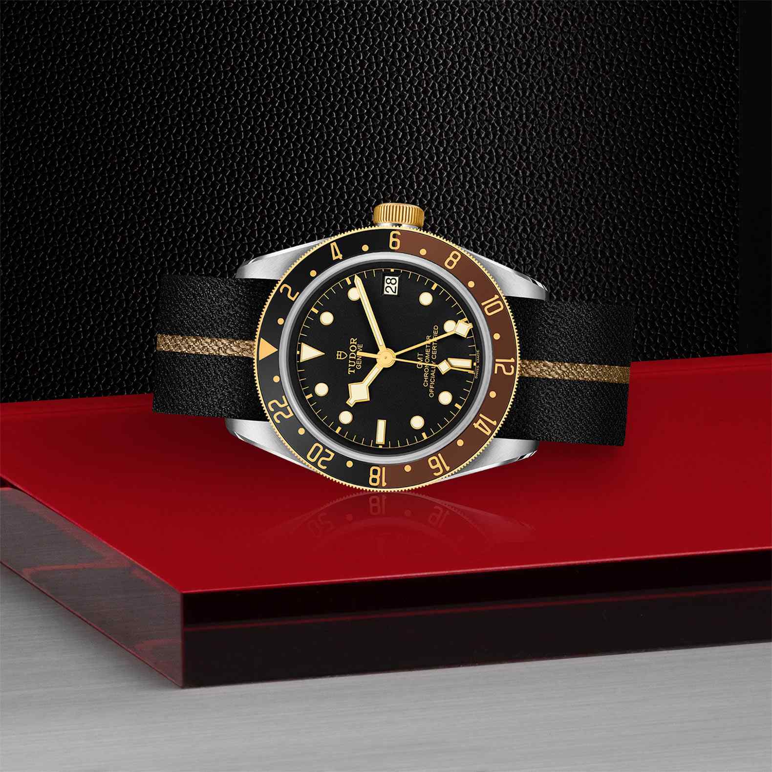The Black Bay GMT is an extension of the Black Bay line with a highly functional complication: a multiple time-zone function – also known as a GMT function. Recognisable by its rotatable bezel, which derives its deep blue and burgundy colour theme from other models in the Black Bay line, but in a matt version, the Black Bay GMT is also a nod to the early days of this watchmaking function.