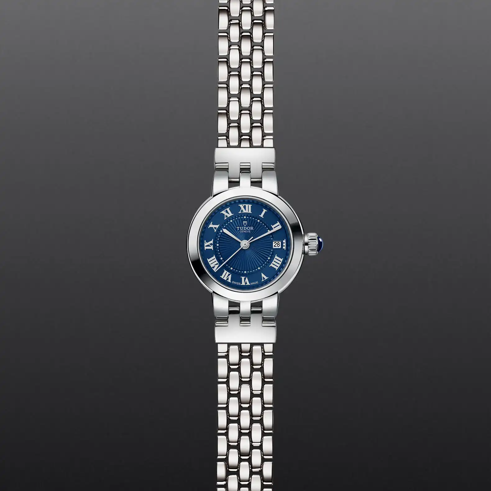 The Clair de Rose line, reimagined in a classic, refined and timeless spirit, uses the brand’s historic aesthetic codes. The Clair de Rose collection is available exclusively in steel and in six configurations and three sizes, 26, 30 and 34mm in diameter, it presents opaline dials with delicate decorations in relief, punctuated with blue lacquered Roman numerals or diamonds. This year, a new “TUDOR Blue” dial option is available for the Clair de Rose in all sizes.