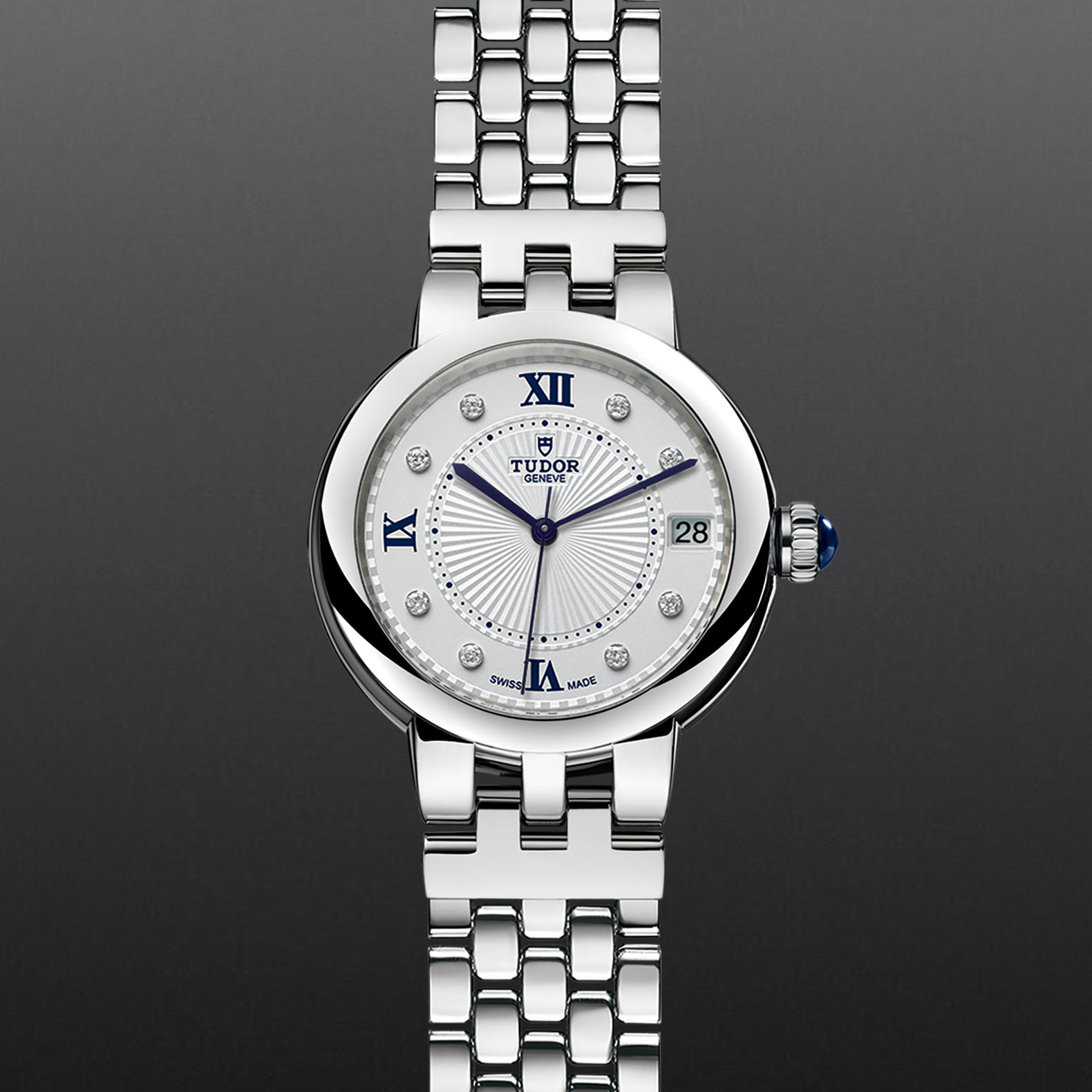 The Clair de Rose line, reimagined in a classic, refined and timeless spirit, uses the brand’ s historic aesthetic codes. The Clair de Rose collection is available exclusively in steel and in six configurations and three sizes, 26, 30 and 34 millimetres in diameter, it presents opaline dials with delicate decorations in relief, punctuated with blue lacquered Roman numerals or diamonds.
