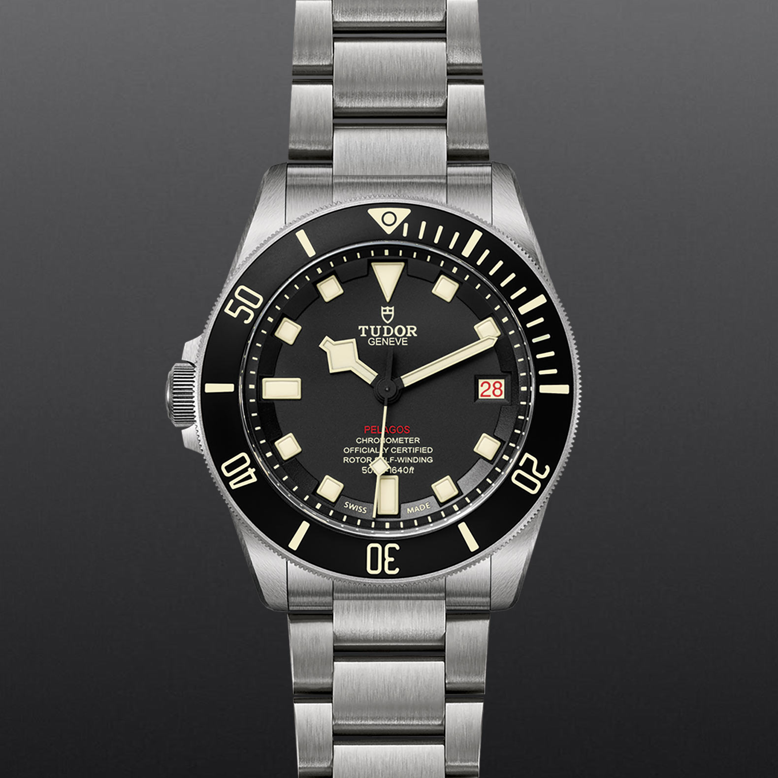 Titanium screw-down winding crown at 9 o’clock with the TUDOR logo in relief Automatic helium escape valve at 3 o’clock