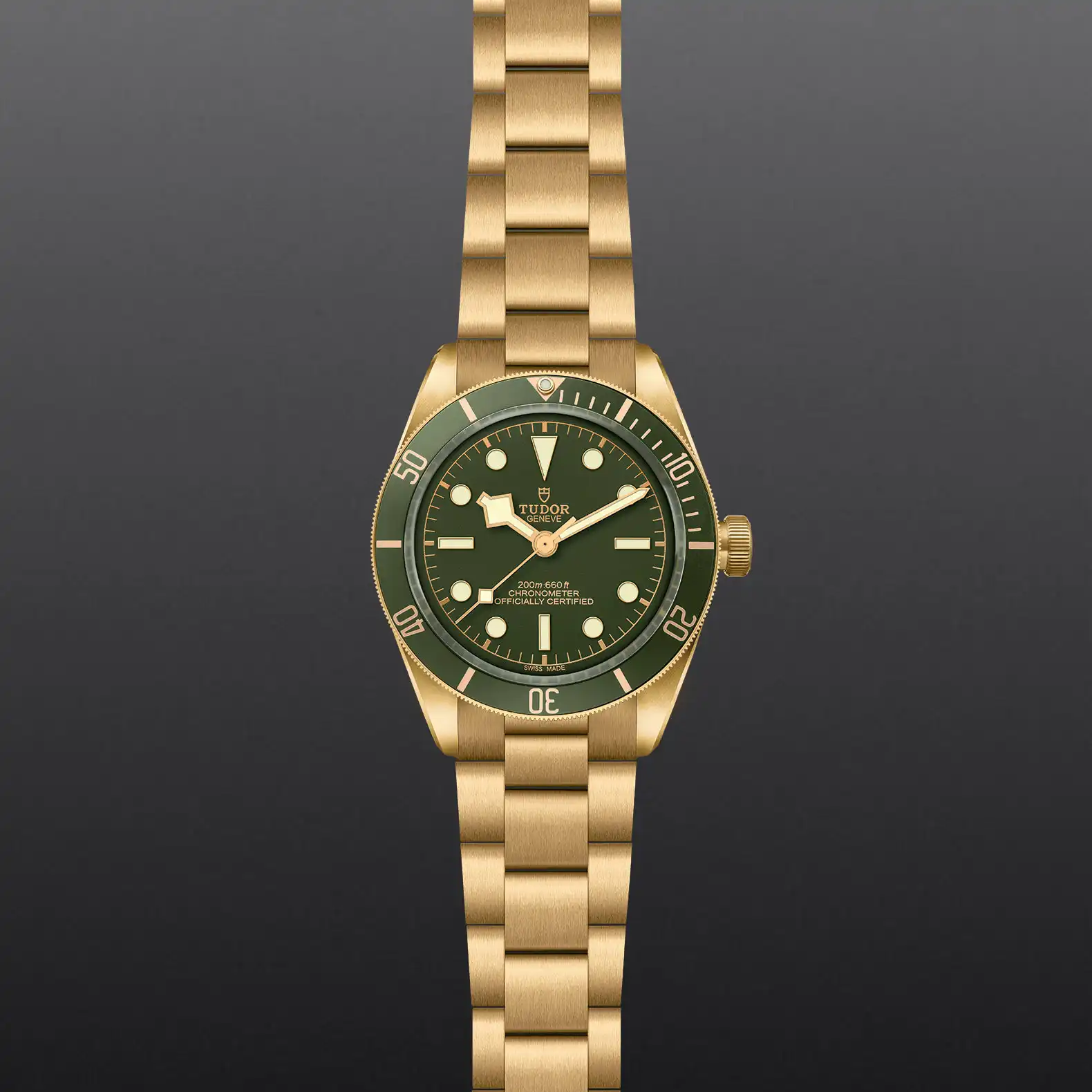 1958年,帝舵表推出第一代帝舵潜水表,其中型号为7924,亦称为“大表冠”。碧湾1958型以此潜水表推出的年份命名,沿袭其众多美学特色。今年,碧湾1958型系列推出两款腕表:碧湾1958型18K,搭配实心黄金表带;以及令人联想起中世纪的喷射机时代的碧湾1958型格林尼治款。