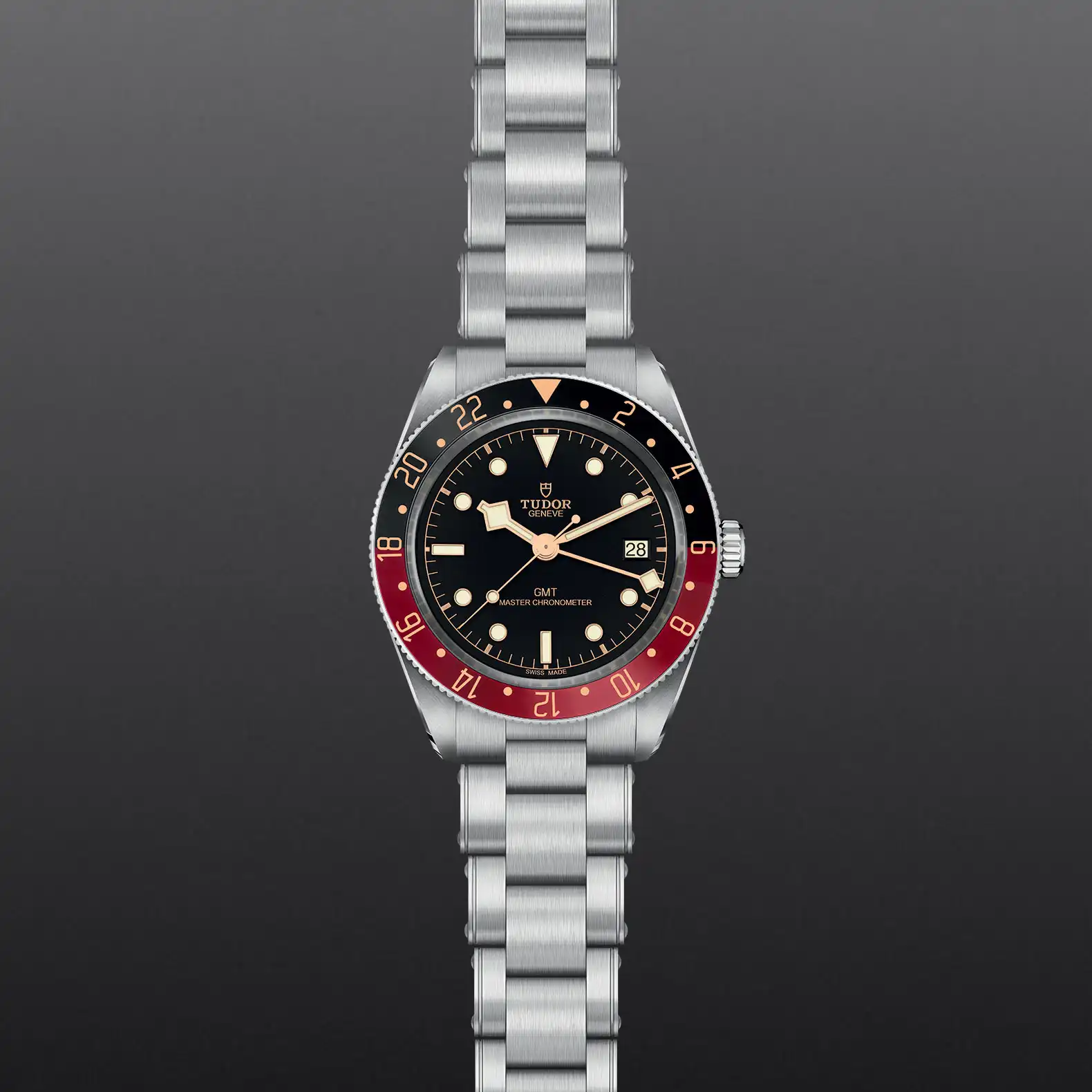 不锈钢三链节“铆钉式”表带,经磨光及磨砂处理,配帝舵表“T-fit”带扣