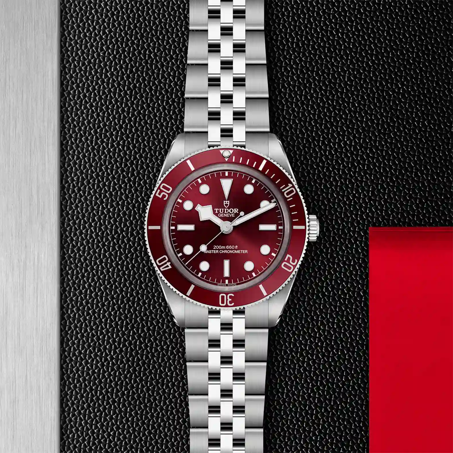 1958年,帝舵表推出第一代帝舵潛水錶,其中型號為7924,亦稱為「大錶冠」。Black Bay 58以此潛水錶推出的年份命名,沿襲其眾多美學特色。今年,一款通過瑞士聯邦計量科學研究院(METAS)大師天文台精密時計認證的酒紅色腕錶加入Black Bay 58系列。這是此錶款首次搭配五鏈節不銹鋼錶帶。