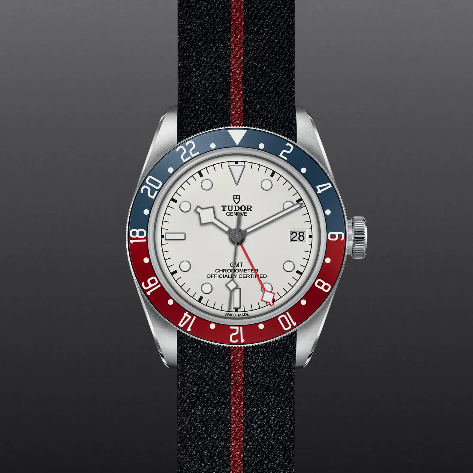 Black Bay GMT擴展Black Bay系列,引入極為實用的複雜功能──「GMT」,即多時區功能。Black Bay GMT配備搶眼的旋轉外圈,沿用Black Bay系列的深藍色和酒紅色配搭,啞面Black Bay GMT同樣向GMT這一傑出功能致敬。